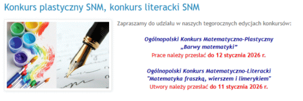 Stowarzyszenie Nauczycieli Matematyki zaprasza do udziału w konkursach: plastycznym pod hasłem "Barwy matematyki" i literackim "Matematyka fraszką, wierszem i limerykiem".