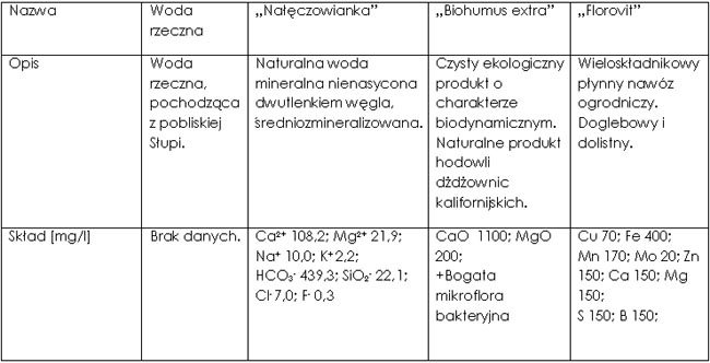 Roztwór wodny nawozu ekologicznego „Biohumus extra”. Wyniki otrzymane z hodowli na tym rodzaju nawozu nie są zadowalające. Choć efekty są lepsze, niż na wodzie mineralnej, to jednak wysokość fasoli rosnącej na wodzie rzecznej jest większa. Być może plony przy użyciu tego nawozu byłyby lepsze, lecz możemy tylko przypuszczać. Producent napisał na etykiecie swego produktu: „Jest swego rodzaju <> uaktywniającą składniki pokarmowe gleb”, jednakże w przypadku naszych badań, nie potwierdziło się to.