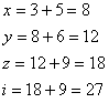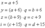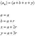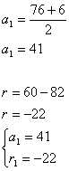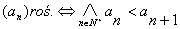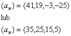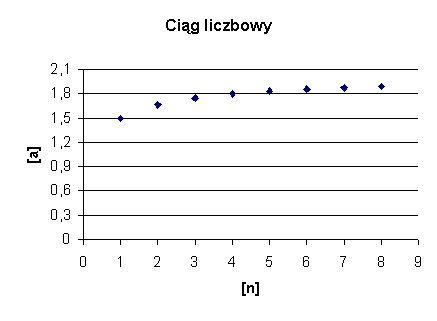 1. a) monotoniczność Weźmy dowolne Wtedy: Na mocy definicji b) Ograniczenia Mówimy, że ciąg jest ograniczony, gdy jest ograniczony z góry i z dołu. zauważmy, że c) Ciąg liczbowy można przedstawić wykresem. 2. Wyznaczamy "r"- stałą oraz "n"-ty wyraz ciągu ze wzorów Podstawiamy wzór sumy i "n" wyrazu do równania oraz rozwiązujemy go. Odp. W ciągu 3. Z warunków zadania wiemy, że: Podstawiamy doprowadzając do jednej niewiadomej i rozwiązujemy układ równań. Układamy czterowyrazowe ciągi z powyższych rozwiązań. Odp. Rozwiązaniem tego zadania są dwa ciągi arytmetyczne spełniające wszystkie warunki zadania. 4. Obliczamy ostatni wyraz ciągu ze wzoru Obliczamy wyrazy ciągu x i y. Odp. Szukanymi wyrazami ciągu są x=80, y=200, które tworzą ciąg geometryczny