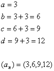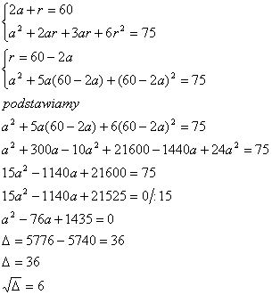 5. Układamy układ równań z trzema niewiadomymi. Układamy i sprawdzamy ciąg geometryczny i arytmetyczny zgodnie z warunkami zadania. Odp. Rozwiązaniem zadania są liczby a=3, b=6, c=9, d=12, 1. a) Badamy monotoniczność ciągu: Jak więc widać ciąg jest rosnący. Ciąg jest ograniczony z dołu, nie jest ograniczony z góry. 2. Sprawdzamy warunek istnienia szeregu: ze wzoru na sumę 3. Boki trójkąta są równe a=18, b=24 i c=30. Jego pole to